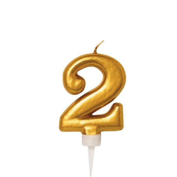 PartyDeco Tårtljus Guld Siffra 2