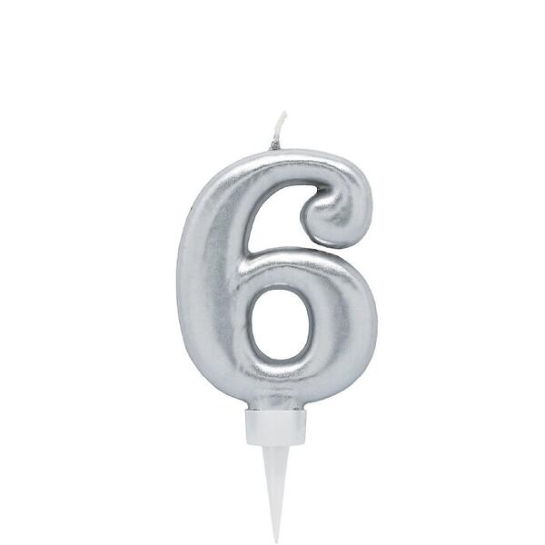PartyDeco Tårtljus Silver Siffra 6