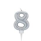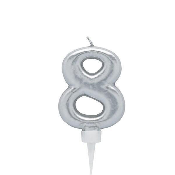 PartyDeco Tårtljus Silver Siffra 8