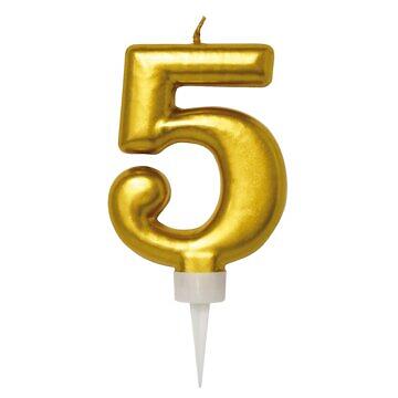 PartyDeco Tårtljus Guld Siffra 5