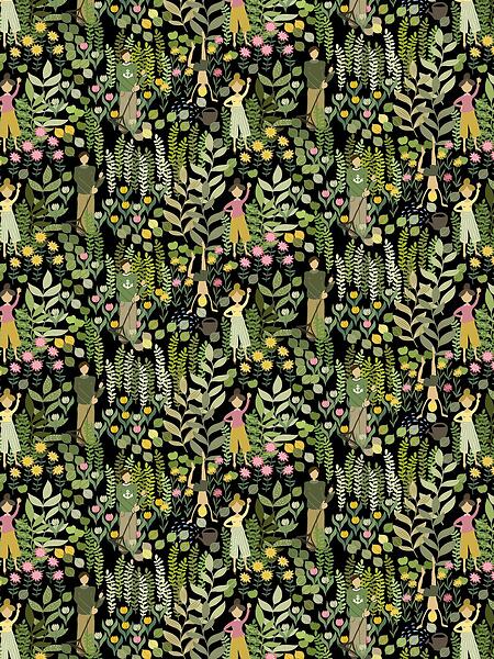 Arvidssons Textil Trädgård Tyg Svart-Grön 150cm