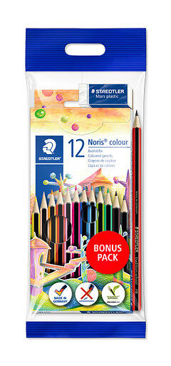 Staedtler Noris Farveblyanter med viskelæder og blyant 12-pak 185 SET2