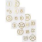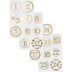 Joulukalenteritarrat, kulta, valkoinen, halk. 40 mm, 9x14 cm, 4 ark/ 1 pkk