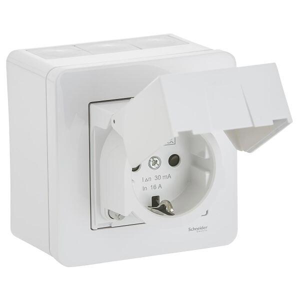 Schneider Electric WDE002979 Vägguttag med jordfelsbrytare, utv, IP44, vit