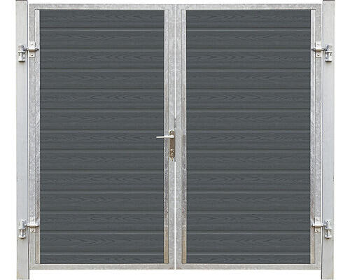 Plus Dubbelgrind Artura vänsterhängd komposit/stål skiffergrå 197x175cm 16cm galvaniserad stålstolpar