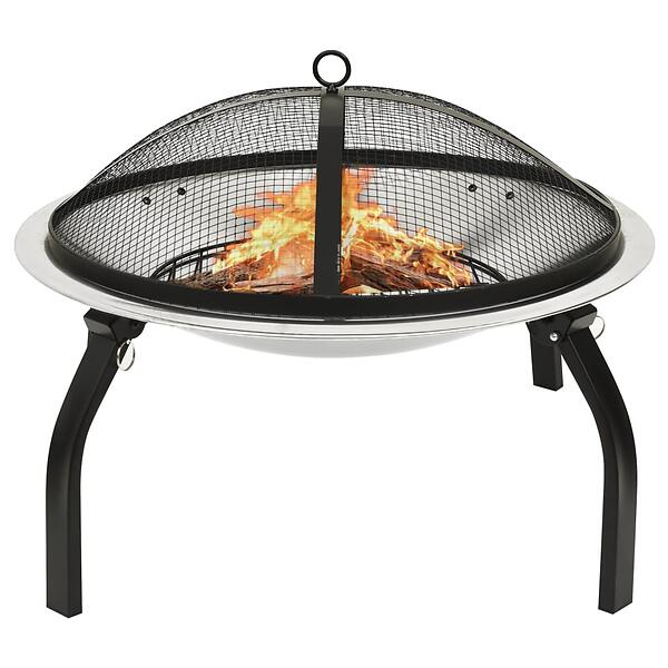 vidaXL 2-i-1 Eldstad 2-i-1 grill och 56x56x49 eldgaffel cm rostfritt stål 313353