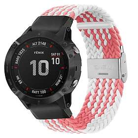 Flätat Elastiskt Armband Garmin Fenix 6X Pink/Vit