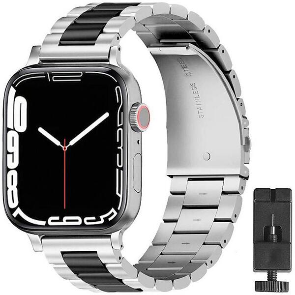 Armband rostfritt stål Apple Watch 7 (45mm) Silver/Svart