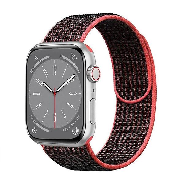 Nylon Armband Apple Watch 8 (41mm) Black/Röd