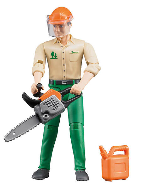 Bruder Figur Mand med Motorsav, Hjelm og Benzindunk 60030
