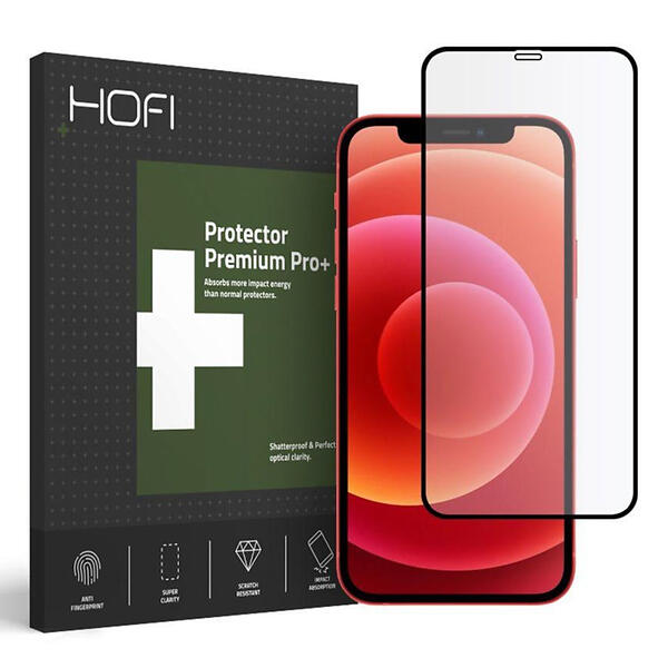 iPhone 12 / 12 Pro Hofi Full Pro+ Hærdet Glas Skærmbeskyttelse - Case Friendly - Sort