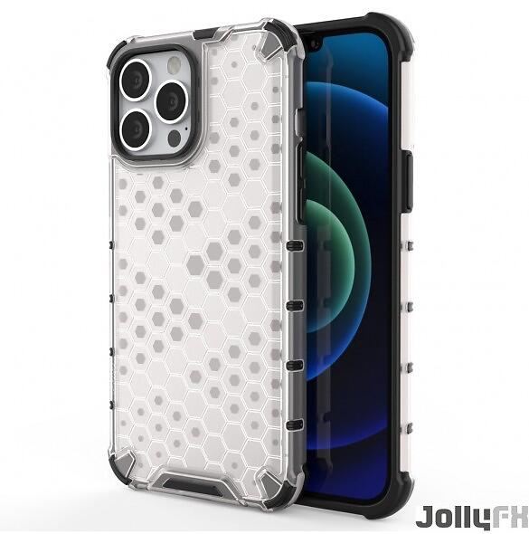 Honeycomb fodral pansrat skal med en gelram för iPhone 13 Pro Max Genomskinlig