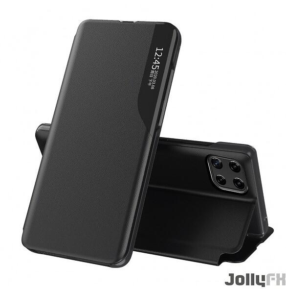 Eco Leather View Case ett elegant fodral med flik och stativfunktion för Samsung Galaxy A22 4G Svart