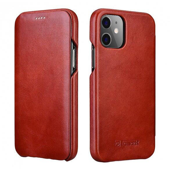 Curved Edge Vintage Folio äkta läderfodral för iPhone 12 Pro / iPhone 12 Röd (RIX1201 röd)