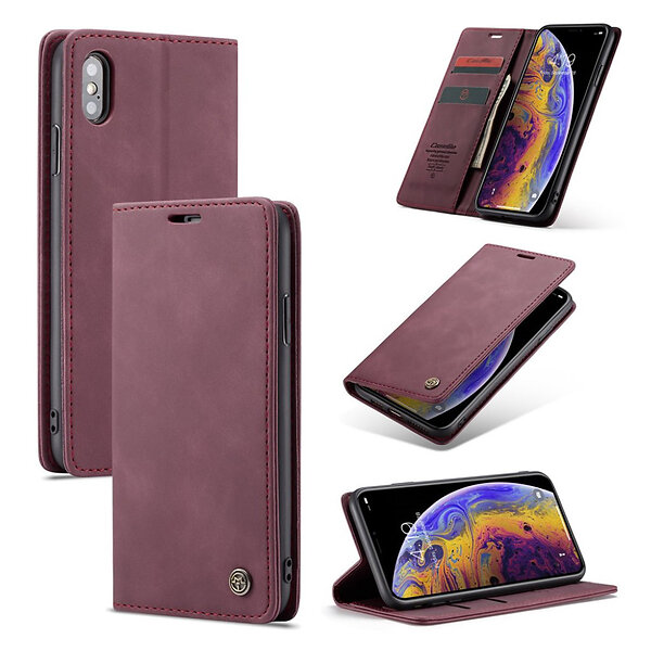 Lux-Case CASEME iPhone Xs Max plånboksfodral i läder vinröd Röd