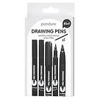 Panduro tuschpennor 0.5 mm, 1 penselspets, 4 mm kiselspets och rund spets, svart
