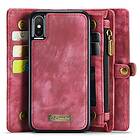 Retro CASEME iPhone X / XS Split läder plånboksfodral Röd