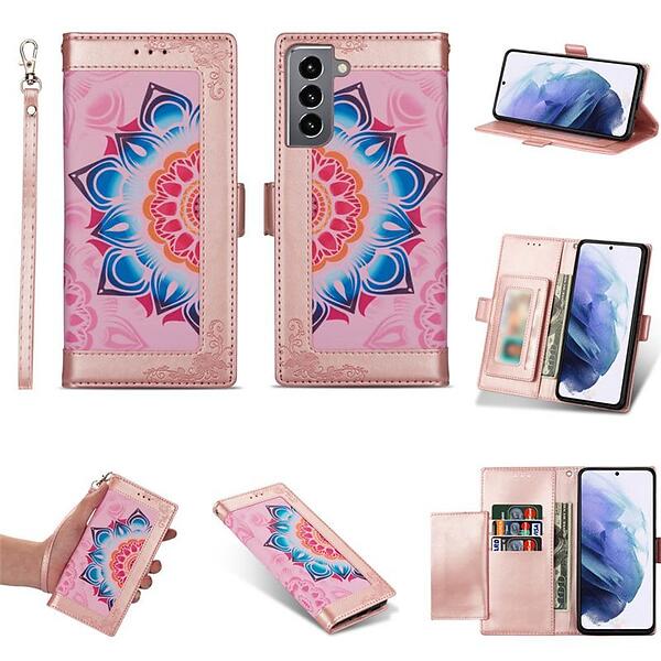 Flower Mobilplånbok 4-kort Samsung Galaxy S22 Rosa