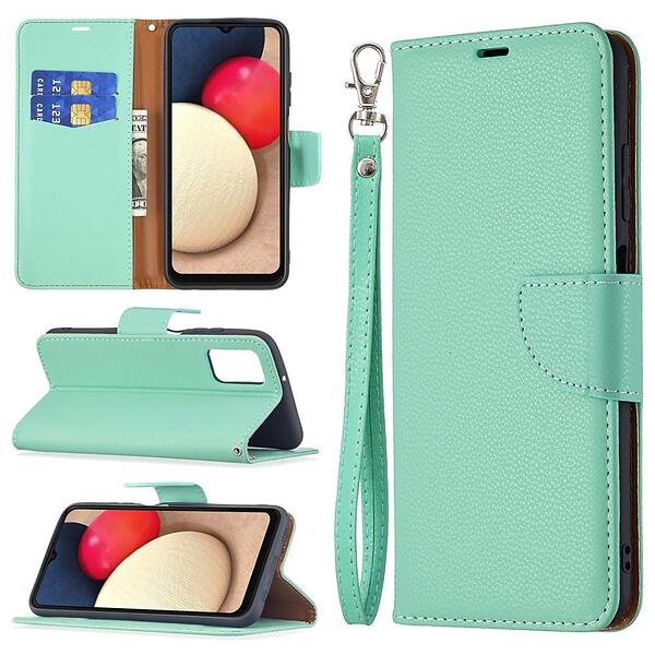 Skalo Samsung A02s / A03s Premium Litchi Plånbok Turkos