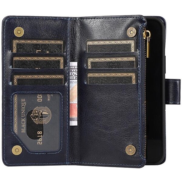 Dubbelflip Zipper 9-kort iPhone 12 (6.1") Blå