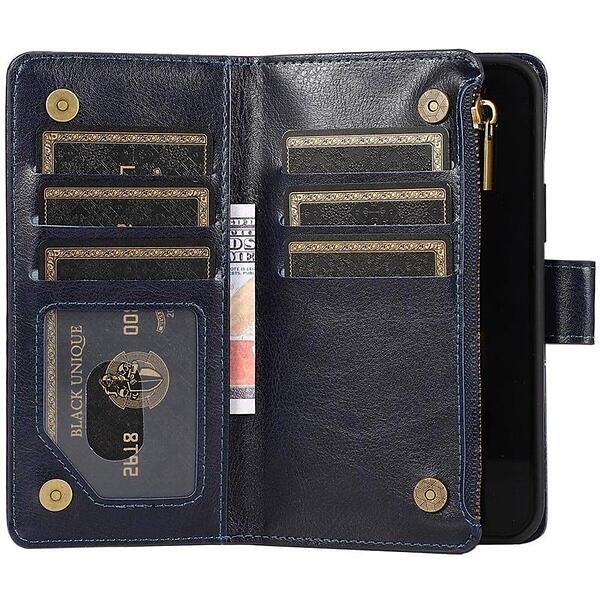 Dubbelflip Zipper 9-kort Galaxy S23 Blå