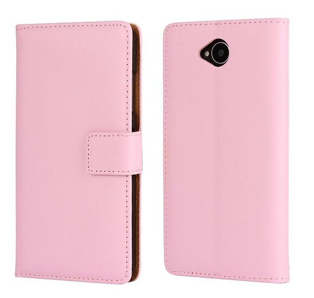 Plånboksfodral Äkta Skinn Lumia 650 Rosa