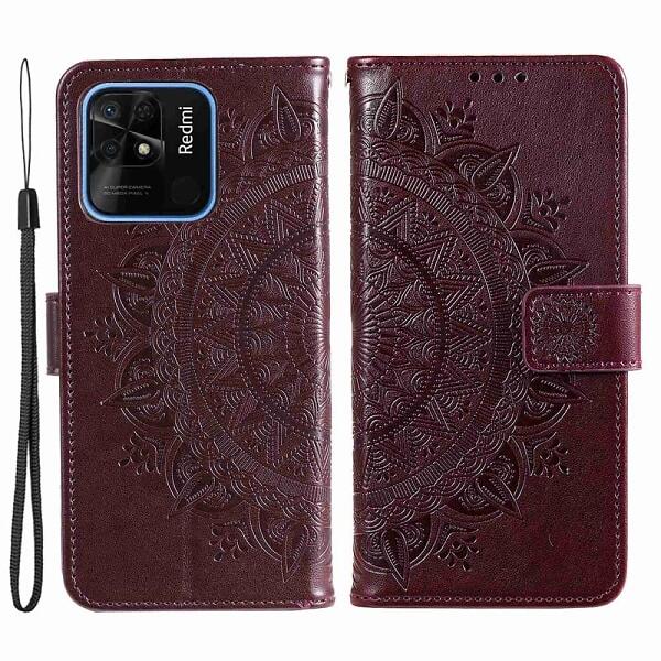 Skalo Xiaomi Redmi 10C Mandala Plånboksfodral Mörkbrun
