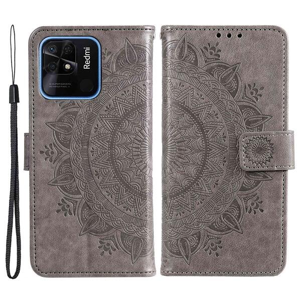 Skalo Xiaomi Redmi 10C Mandala Plånboksfodral Grå