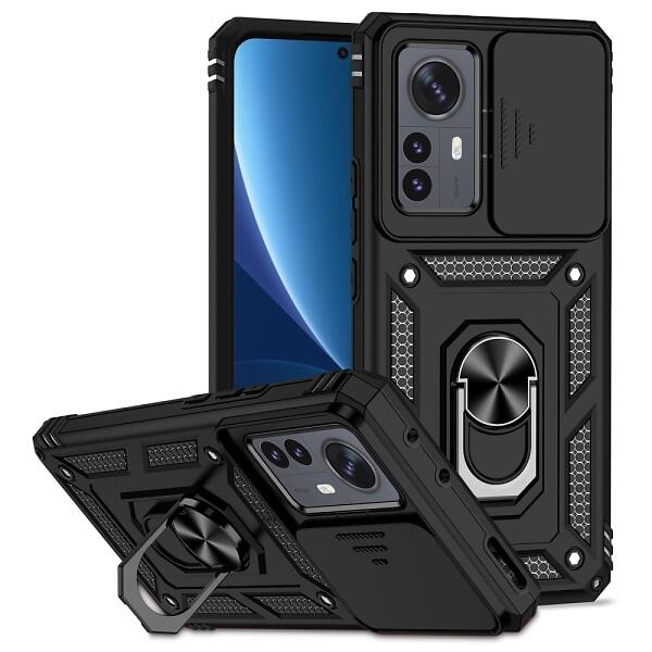 Skalo Xiaomi 12 Pro Armor Hybrid Metallring Kameraslider Svart