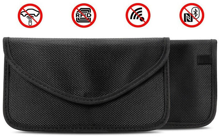 Svart väska med RFID-skydd för kort, telefon, bilnycklar, m.m.