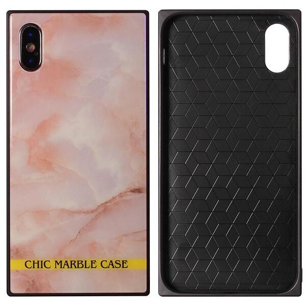 Chic marmor skal härdat glas iPhone X / Xs Rosa