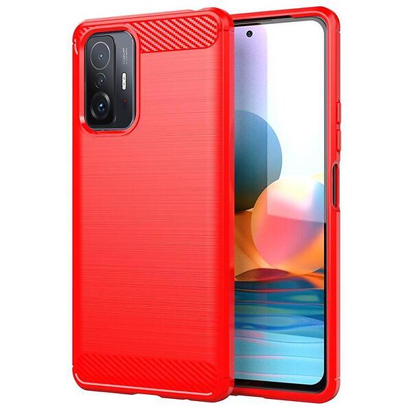 Skalo Xiaomi 11T/11T Pro Armor Carbon Stöttåligt TPU-skal Röd