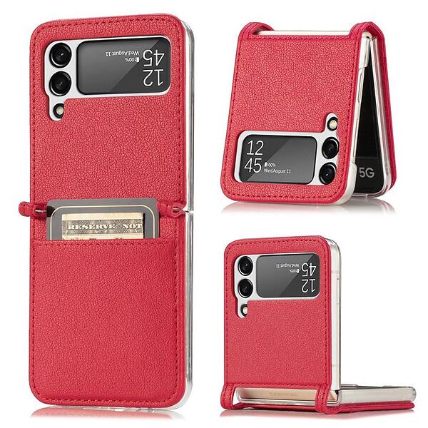 Läder skal med kortplats Galaxy Z Flip 4 Röd