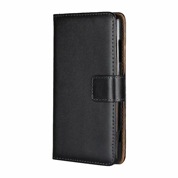 Skalo Sony Xperia 1 III Plånboksfodral Äkta Skinn Svart