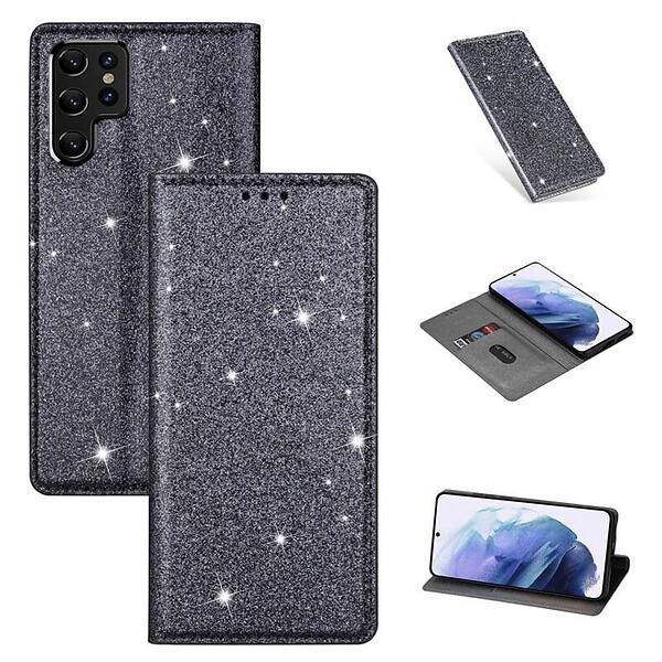 Glitter Smart FlipCase Samsung Galaxy S22 Ultra Grå
