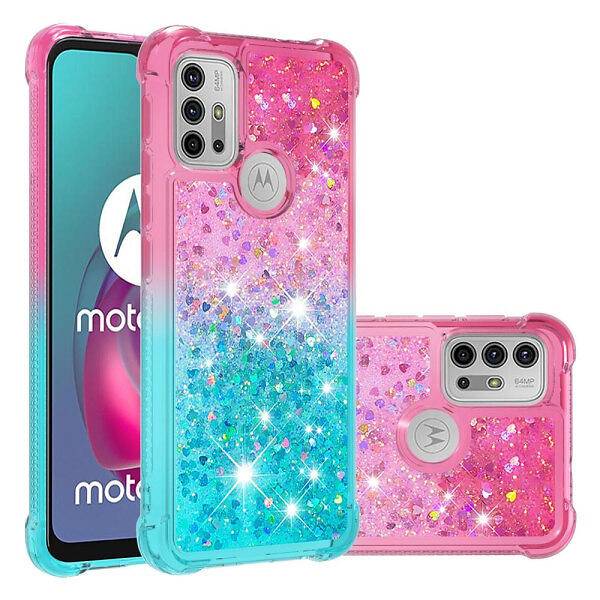 Skalo Moto G20/G30 Kvicksand Glitter Hjärtan TPU-skal-Turkos