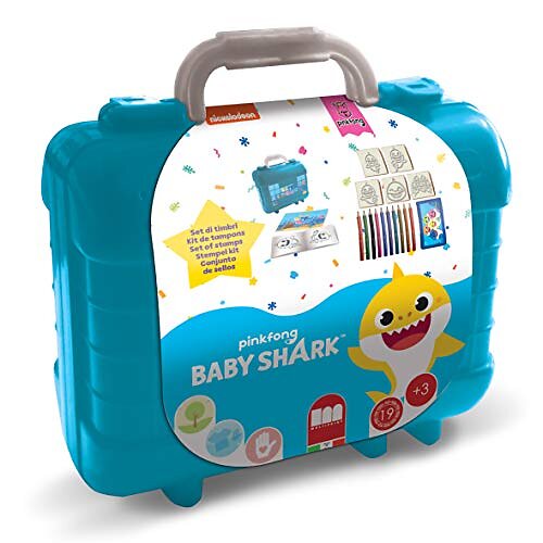 Coloring Book Multiprint Travel Set Baby Shark, Made in Italy, , with Puzzles and Pencils, Stamps for Children, in Wood and Natural Rubber,