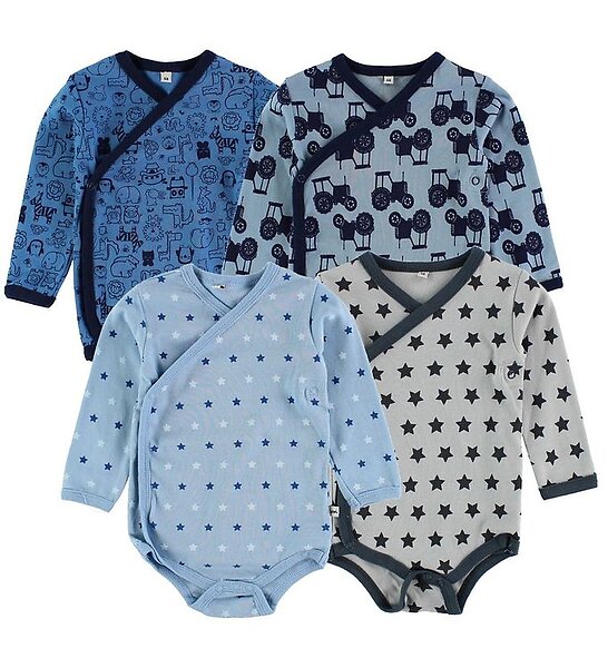Pippi Baby Omlott around Bodies 4-pack Blue/Grå m. Tryck 68 Baby Body L/Ä (Jr)