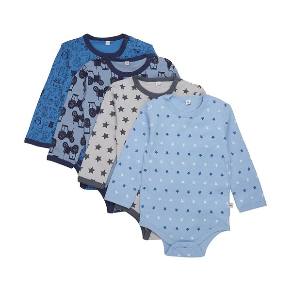 Pippi Baby Body L/Ä 4-pack Blue/Ljusblå m. Mönster 1½ år (86) Baby Body L/Ä (Jr)