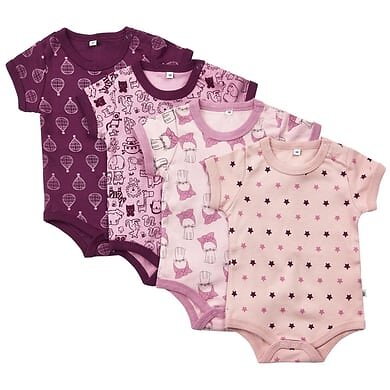 Pippi Baby Body K/Ä 4-pack Pink/Lila m. Mönster 74 Baby Body K/Ä (Jr)