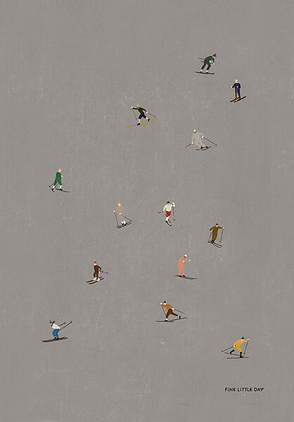 Fine Little Day Skiers poster 50x70 cm Grå