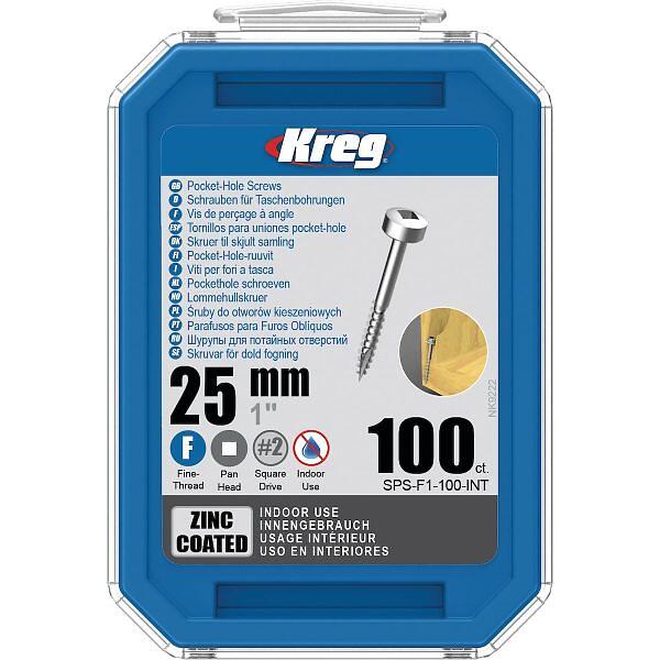 Kreg SPS-F1-100-INT Skruv 25 mm Ø, förzinkad, Pan Head 100-pack