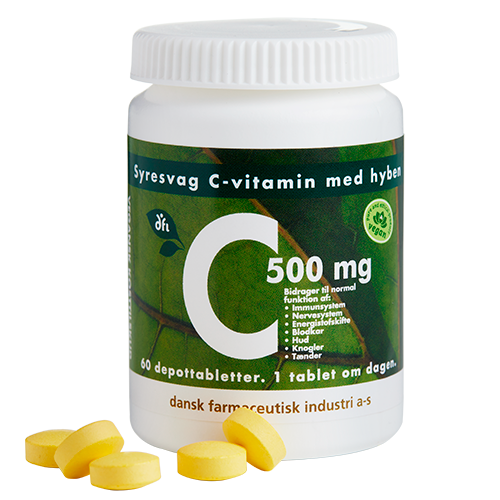 DFI Grønne Vitaminer C-vitamin m. Nypon, 500 mg 60 tabletter