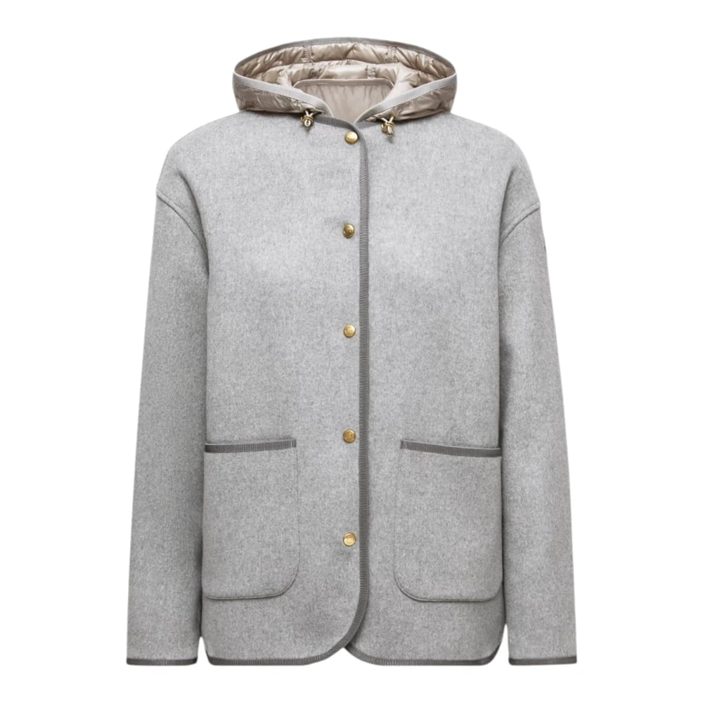 Moncler, Jakker , Herre, Grå, M, Uld, Reposse 3-i-1 Uld- og Cashmere Kort Dunjakke