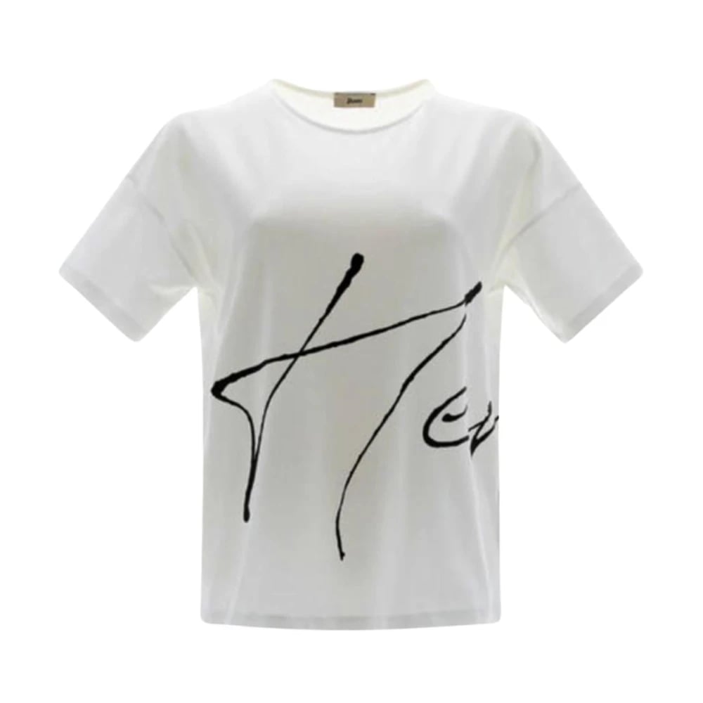 Herno, Toppe , Dame, Hvid, S, Bomuld, T-shirt med kort ærme og 3D-print
