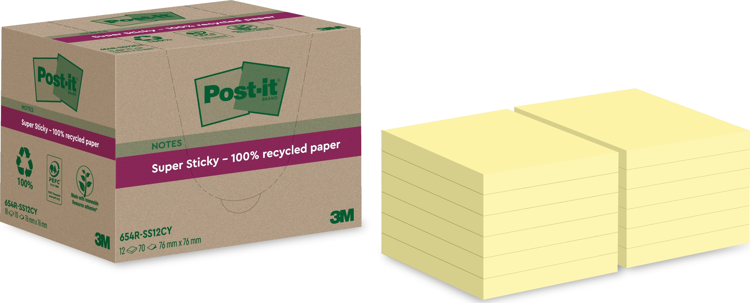 3M Post-it notes super sticky Canary Yellow 76 x 76 mm, Recycled - 3 pack