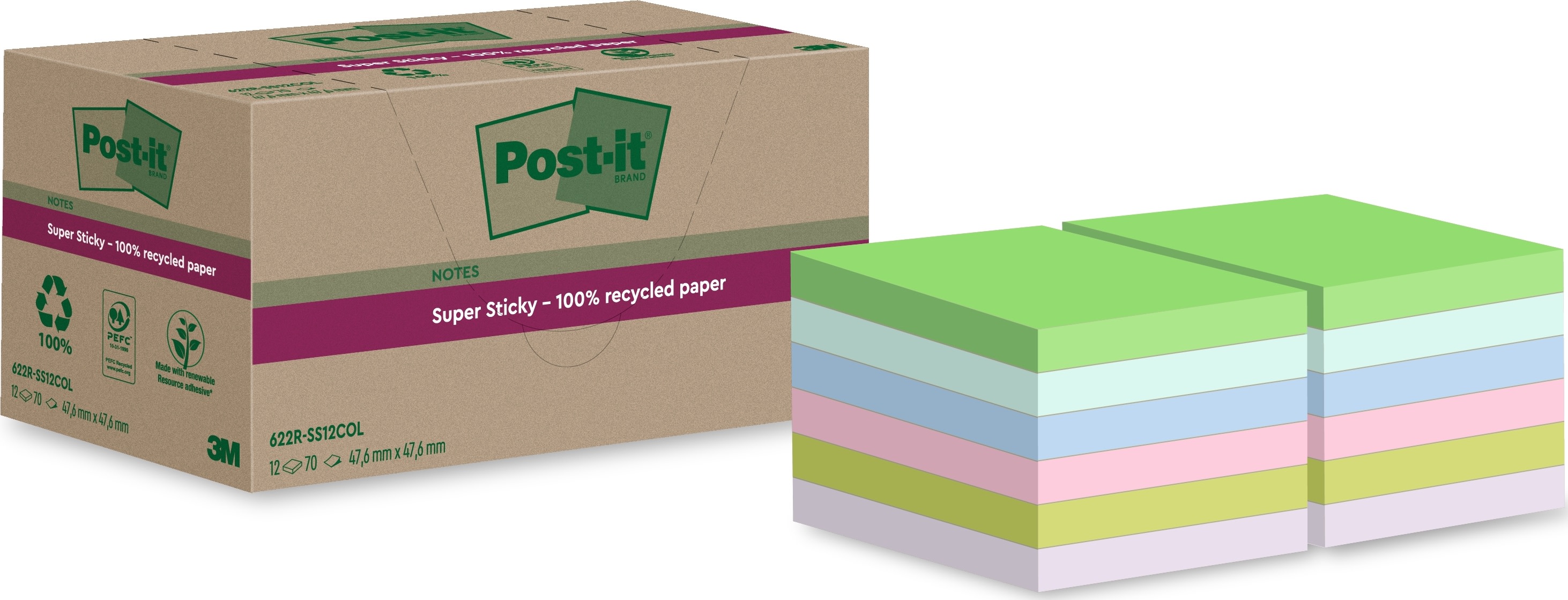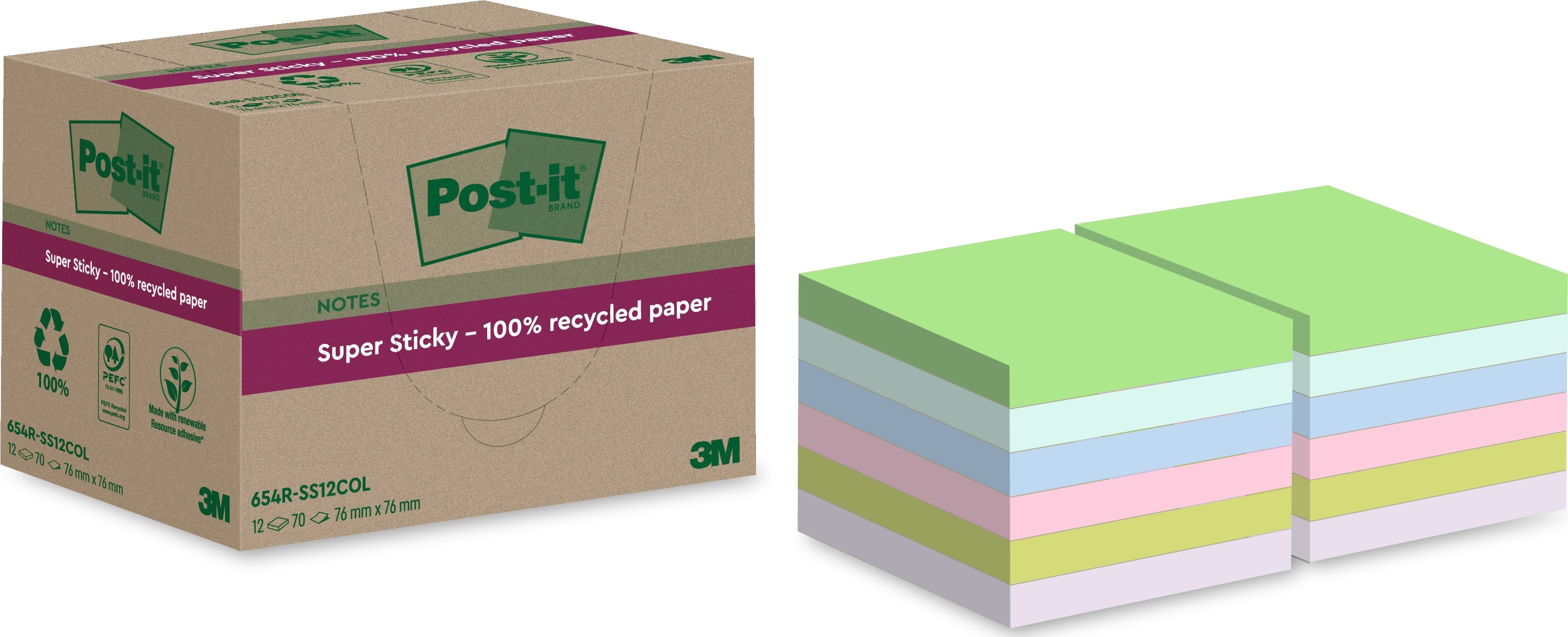 Post-it Super Sticky notes, 76 x 76 mm, 12 stk.