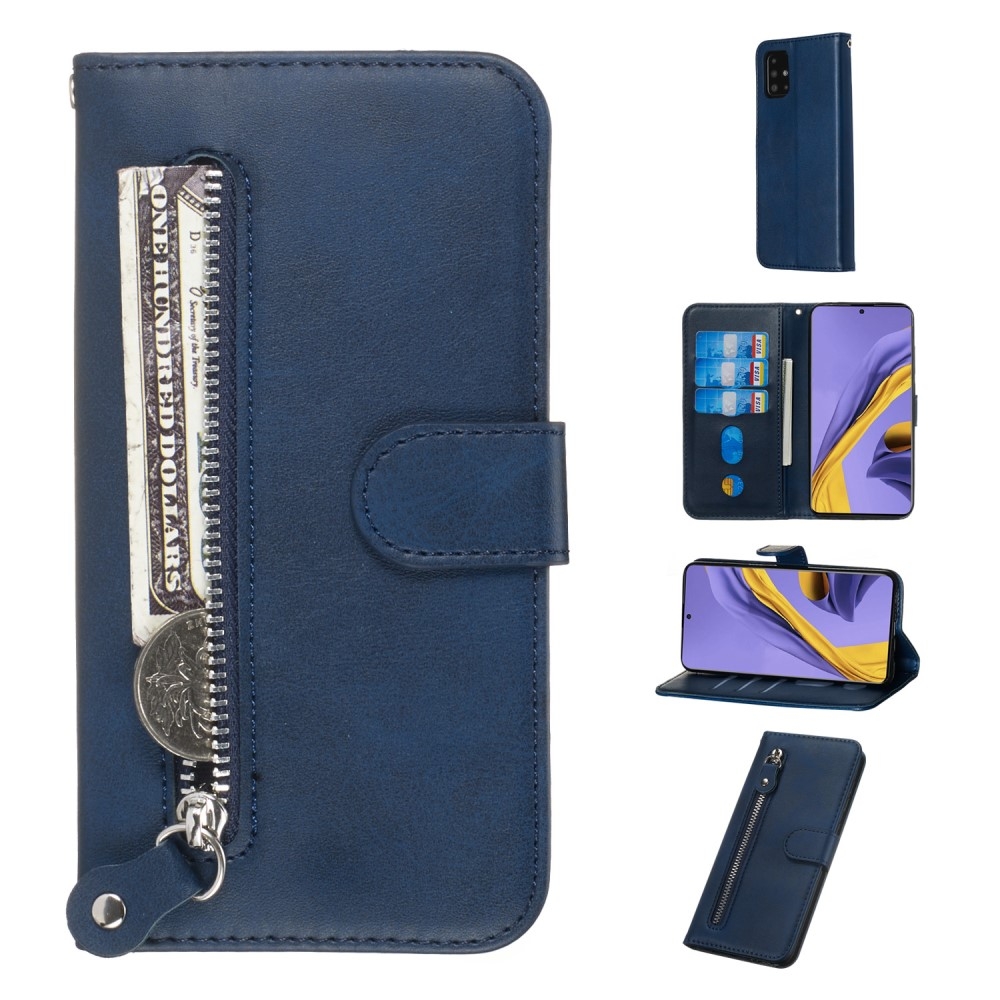 Samsung Galaxy A51 - Læder cover / pung m/udvendig lomme - Blå
