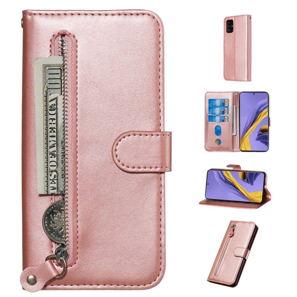 Samsung Galaxy A51 - Læder cover / pung m/udvendig lomme - Rosa guld