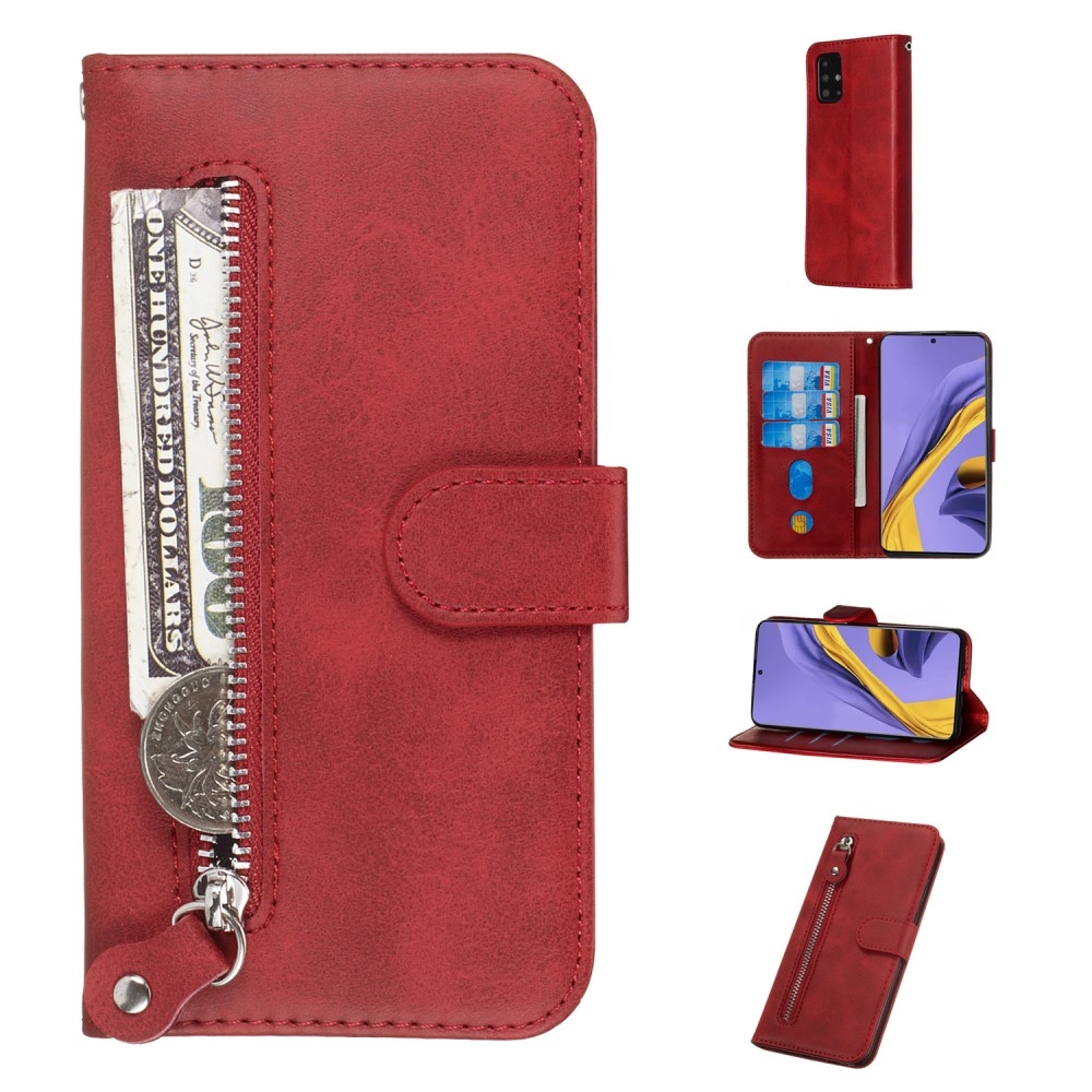 Samsung Galaxy A51 - Læder cover / pung m/udvendig lomme - Rød